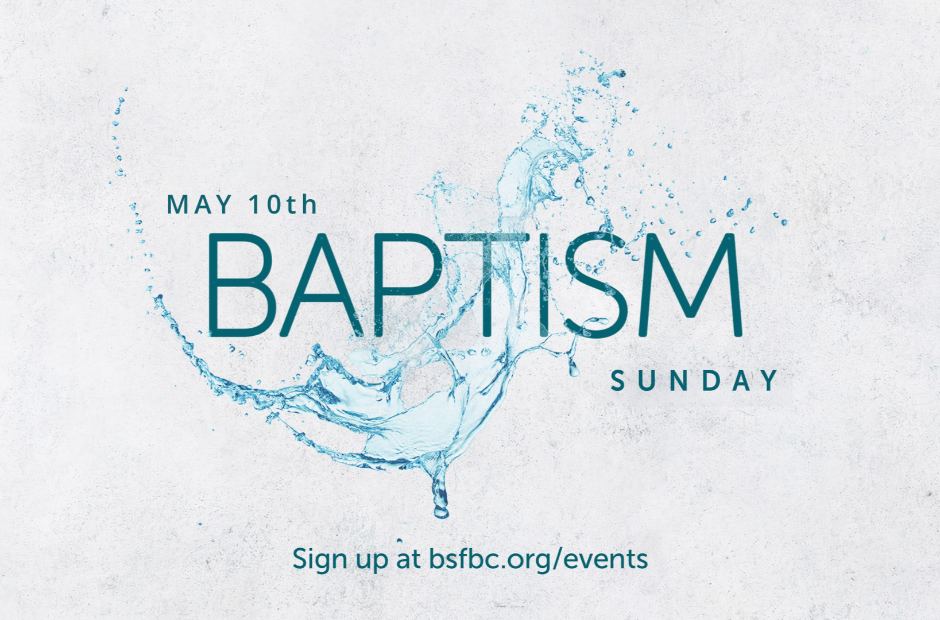 If you are ready to take your next step of faith with water baptism, we will be having a Baptism Sunday on May 10th. If you are interested, or simply have questions about baptism, you can fill out the interest form at the link above.