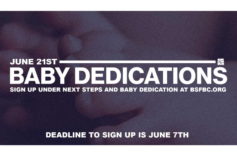 Here at BSFBC we do not practice infant baptism, but we believe in dedicating our children to God and making a commitment as parents to raise our children in the Lord. If you have a baby or child you would like to dedicate, you can fill out the interest form at the link above.