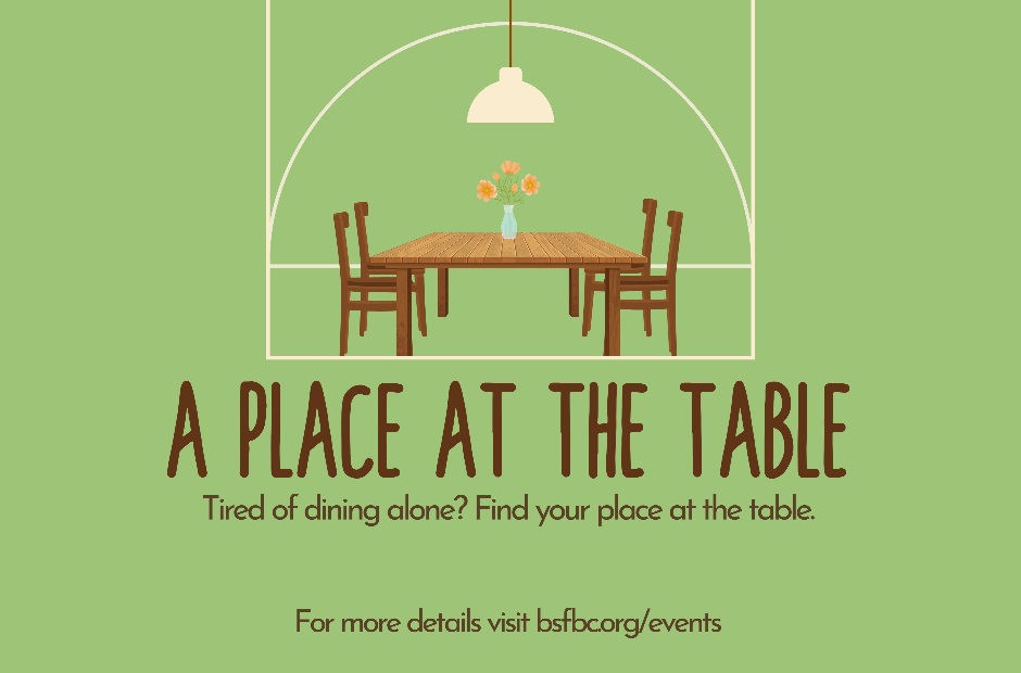 You don't have to dine alone. If you're craving a good meal and good company, we have a place at the table for you! This group will meet twice a month to enjoy a meal together. For dates, locations, and sign up details, click the link above.