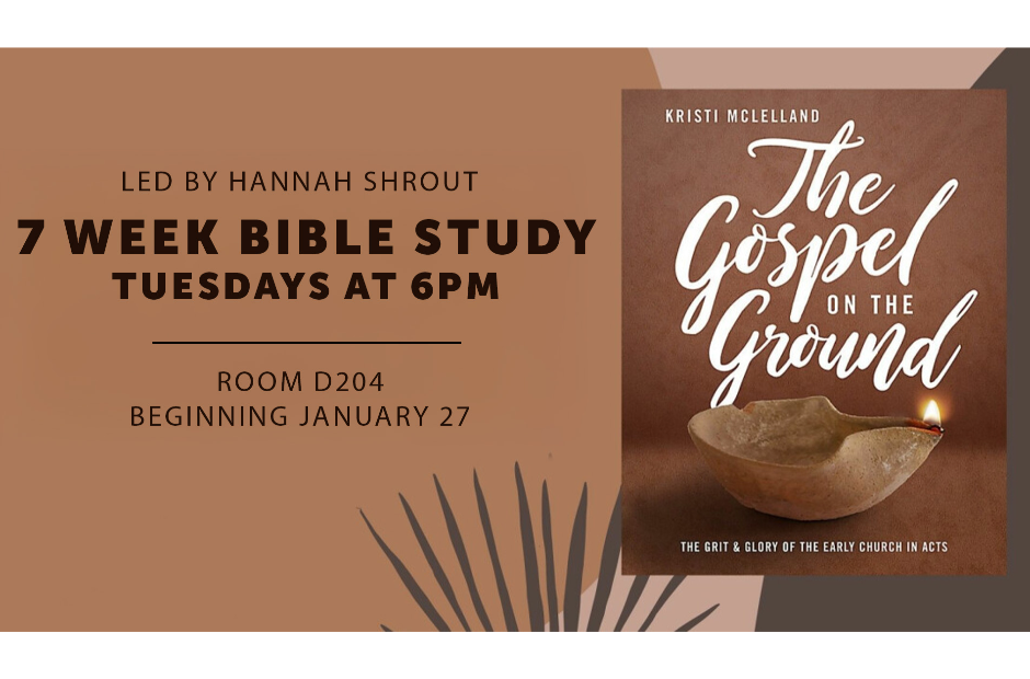 Ladies, join us beginning Jan. 27th as we unpack the life of the early church in the book of Acts. We will see how the kingdom of God is always on the move and always looking outward to bring meaning and joy to a world searching for true fulfillment and hope. To sign up for this Bible Study, contact Hannah Shrout: hshrout@bsfbc.org